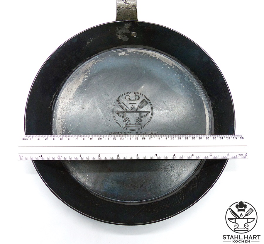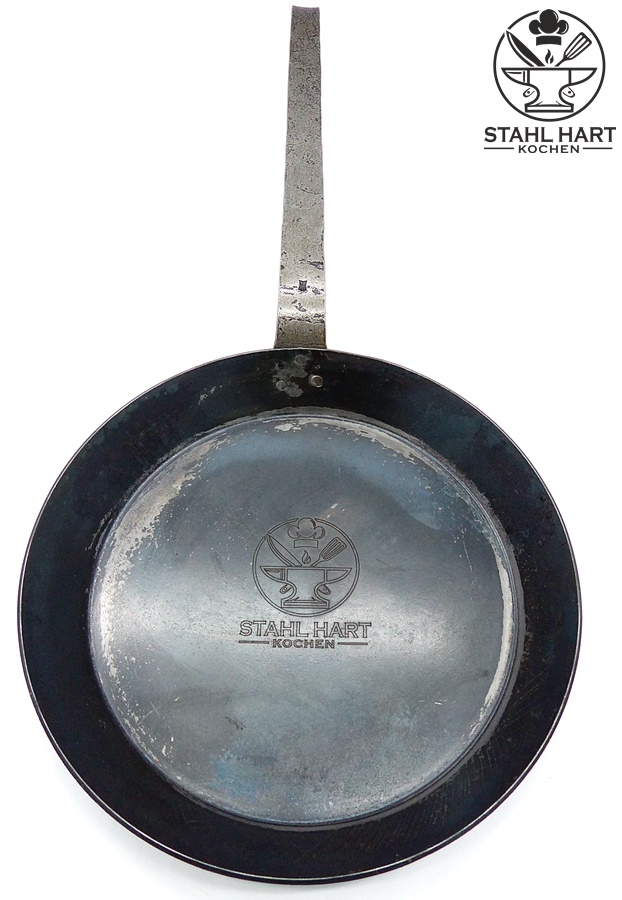 Der Pfannenboden wird bei etwa 1.000 °C gesenkgeschmiedet, was eine saubere Kante und außergewöhnliche Festigkeit garantiert. Mit einer Materialstärke von 3 mm ist die Pfanne besonders robust und langlebig – ein echtes Werkzeug fürs Leben. Der vernietete Griff ist mit einem schönen Griffende von Hand geschmiedet.