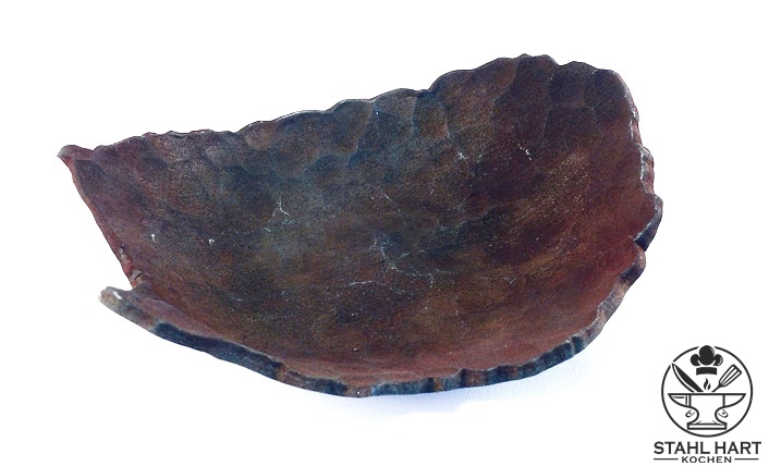 Handgeschmiedete kleine Designschale mit massiver Schmiedestruktur und Oberfläche mit edler Rost-Patina.